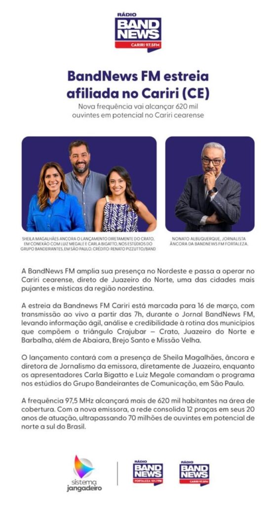 BANDNEWS FM INAUGURA AFILIADA NO CARIRI