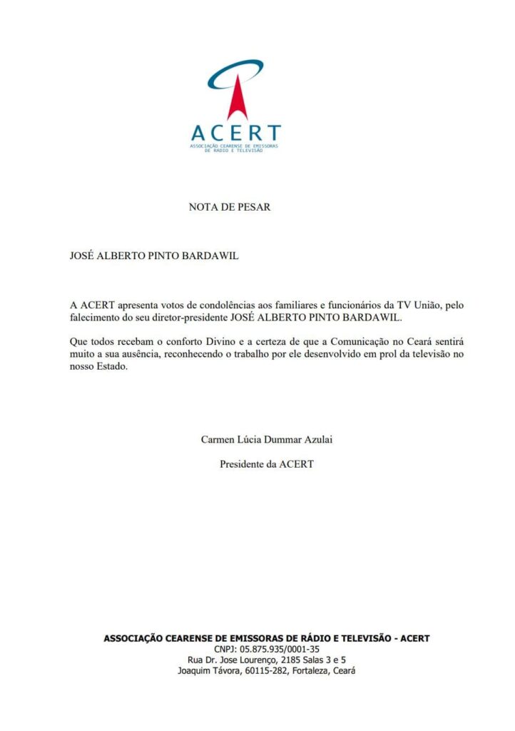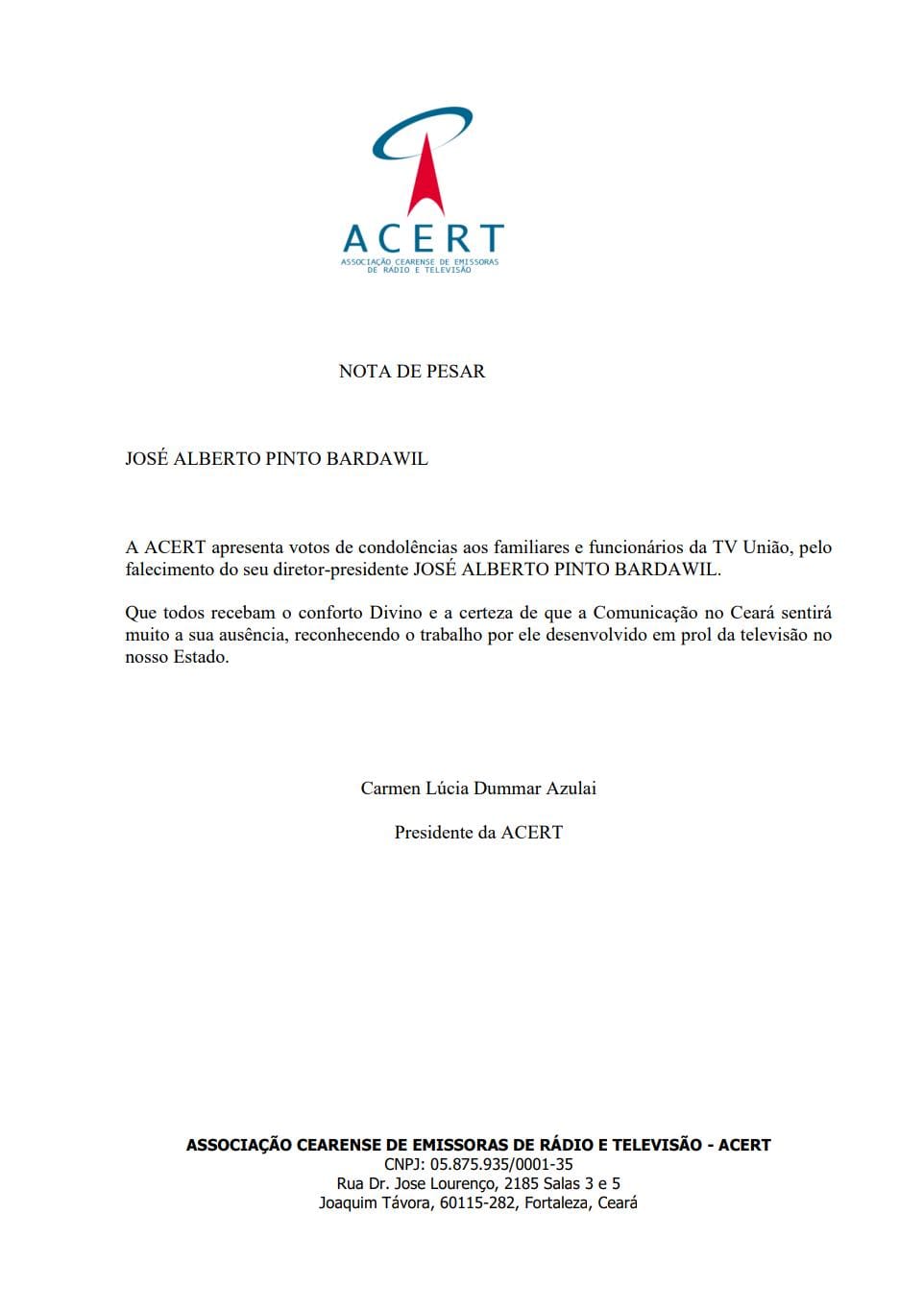A Associação Cearense de Emissoras de Rádio e Televisão – ACERT, atua no Estado do Ceará desde o dia 16 de março de 1977, reunindo cinco emissoras de televisão, com sede em Fortaleza, e 181 emissoras de rádio AM e FM, das quais 16 instaladas na capital.