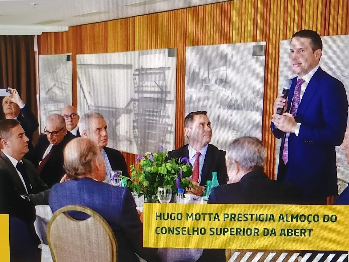 O presidente da Câmara dos Deputados, Hugo Motta (Republicanos-PB), participou, nesta terça-feira (24), em Brasília, de almoço que reuniu o Conselho Superior da ABERT.